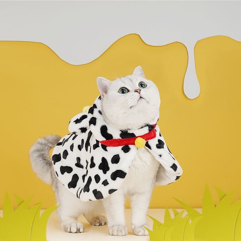This Cow Costume for Cats is the perfect way to add a fun and quirky touch to your pet’s wardrobe. Made from soft, plush fabric, the costume features a white and black spotted design, complete with cute little horns and a red collar with a bell. It’s not just adorable, but also cozy, ensuring your feline stays comfortable while looking stylish. Whether for a photoshoot, a costume party, or just a fun day at home, this costume will have your cat looking like the cutest little cow on the block. Available in various sizes to fit cats of all breeds, it’s a must-have accessory for the holiday season or any time you want to spread some smiles!