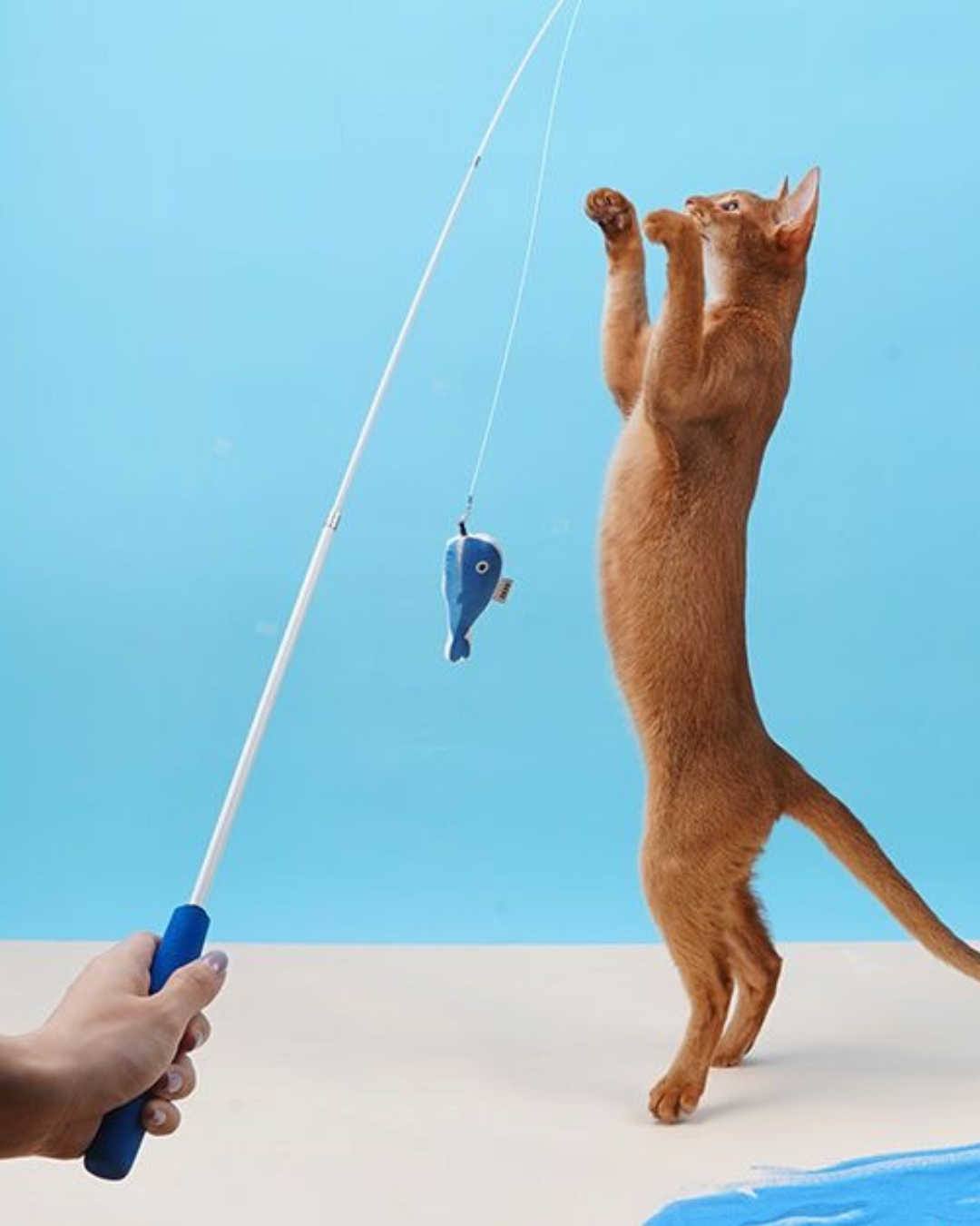 The cat fishing toy set includes a lightweight rod with a comfortable handle and soft, plush fish toys in various colors. The fish dangle from the rod, enticing your cat to chase, jump, and pounce, tapping into their natural hunting instincts. It offers an engaging and interactive way to keep your cat entertained, active, and mentally stimulated, making it a perfect toy for bonding and playtime.