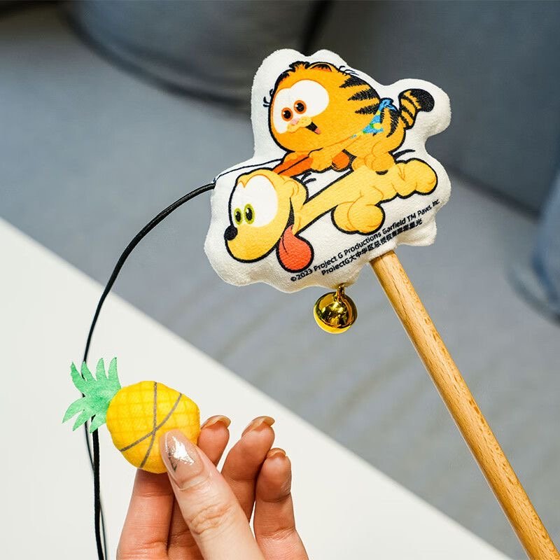 This fun and playful cat toy features a wooden wand adorned with a cute plush Garfield and Odie character tag, complete with a dangling pineapple for extra fun. Designed to spark your cat’s natural instincts, this interactive toy provides endless entertainment with its bouncy, tempting pineapple. Whether it’s batting, chasing, or swatting, your cat will love playing with this adorable duo, all while enjoying the playful jingles from the attached bell! Perfect for bonding time and active play, Garfield’s Pineapple Play Wand will be a hit with your feline friend.